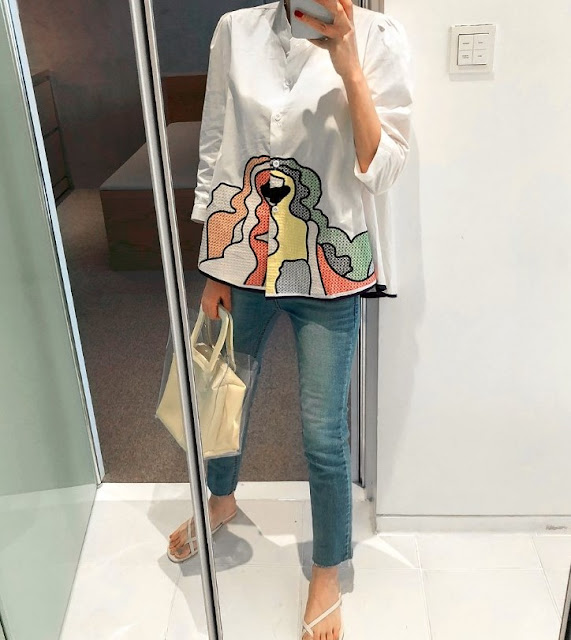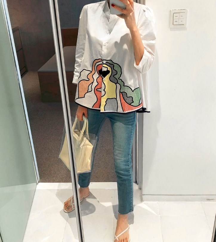 以下這件花花外套初春時看到,但當時搬家忙沒有買,現在買了要等到入秋或下年春天才可以穿了,285港元。再之後一件白襯衣162港元。