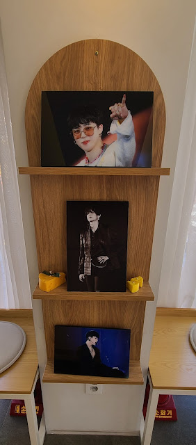 從展覽會出來後,朋友告訴我HYBE附近有幾個Jimin生日而辦的cafe event,我就順便去看一看,第一個就在HYPE大樓旁邊。其實我去的那天cafe event已完成,只是有一些佈置還在,不過我沒有儲飯製周邊的習慣所以沒所謂。還沒食早餐與午飯,我就點了件蛋糕加上咖啡,坐一陣休息一下。